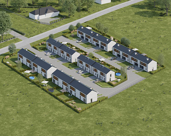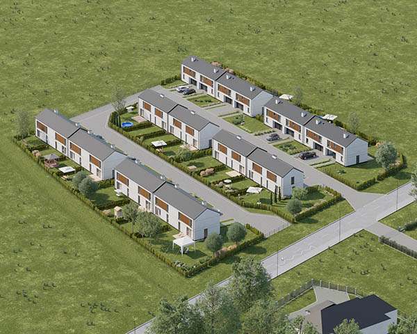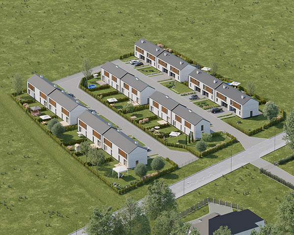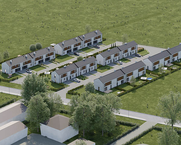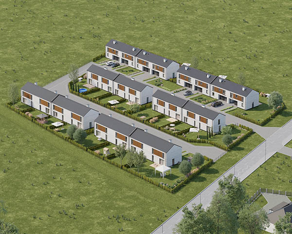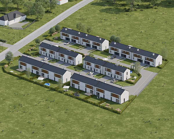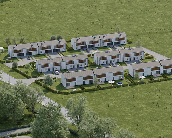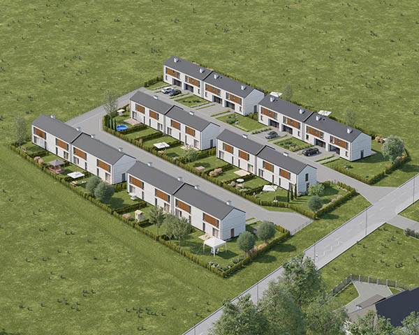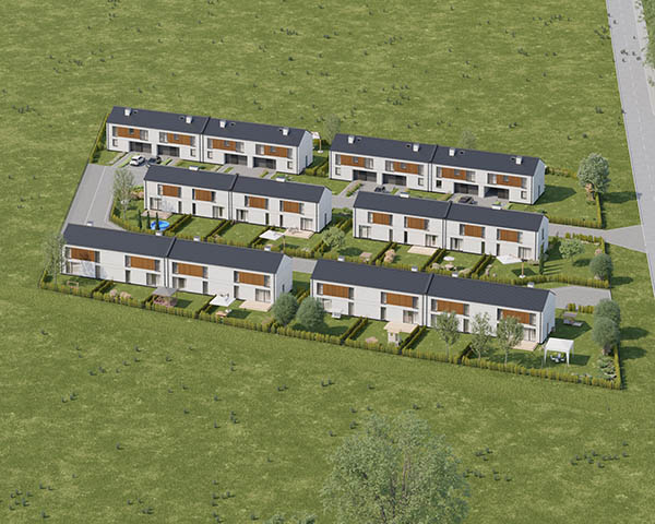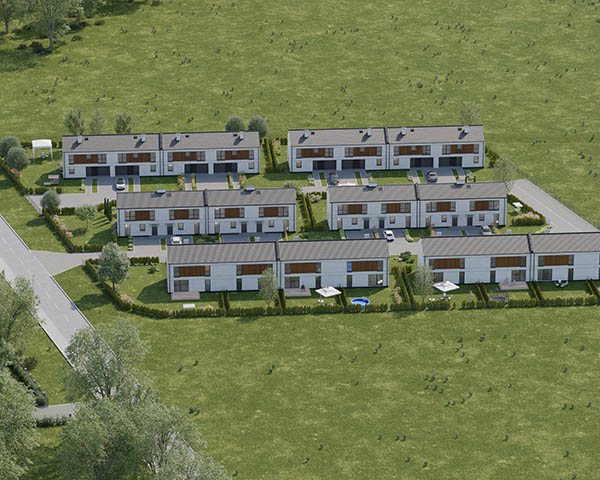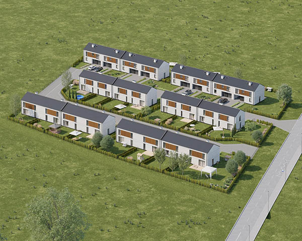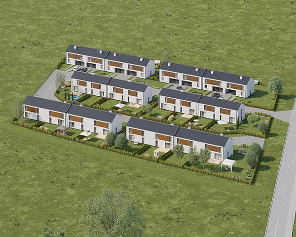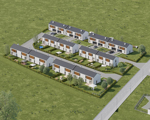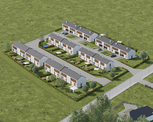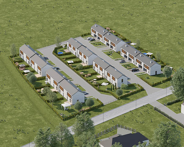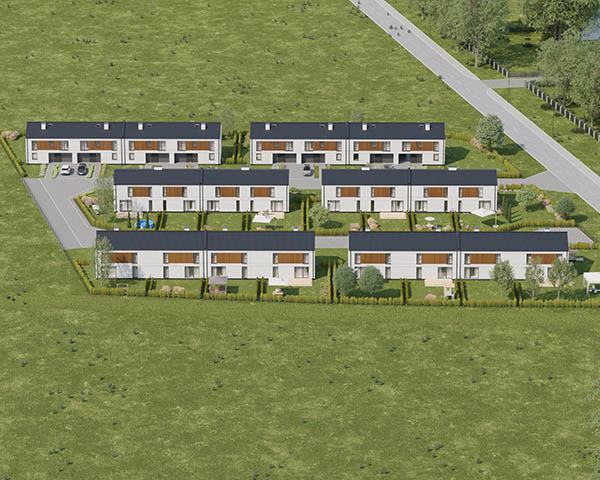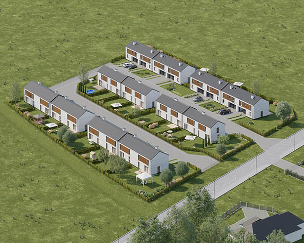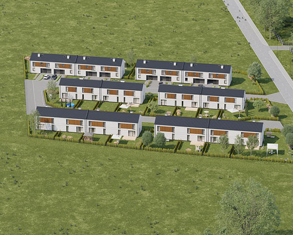 Nasza inwestycja to osiedle 24 nowoczesnych domów o funkcjonalnym rozkładzie dostępnych w dwóch